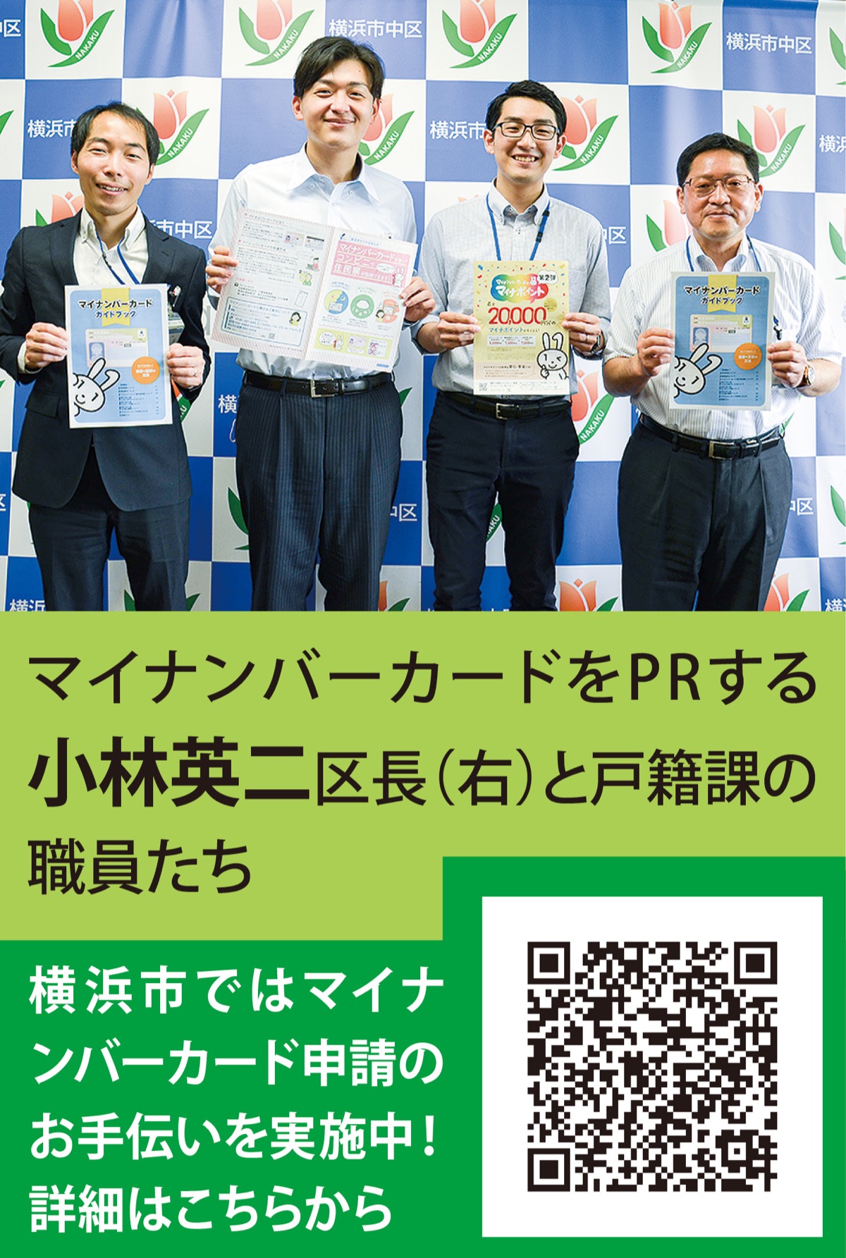 マイナンバーカードの申請はお済みでしょうか。政府は今年度末までに全住民への交付を目指しており、横浜市でも申請のお手伝いを実施中です。6月からは区役所でカード作成時に必要な写真を撮影するサービスを開始。9月からは各地区センターでも支援できるよう準備を進めています。手ぶらで来ていただいて構いません。