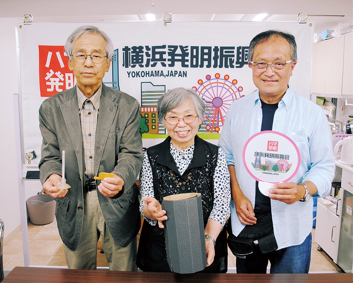 発明サロンをなか区民活動センターなどで毎月開き、日常生活の「困った」や「もったいない」から生まれたアイデアを形にしているユニークな団体がある。「NPO法人横浜発明振興会」。様々なアイデアやスキルをもった「発明愛好家」が集まり、意見交換を通じ、互いに高め合う場となることを目指し、60年以上活動を続けている。