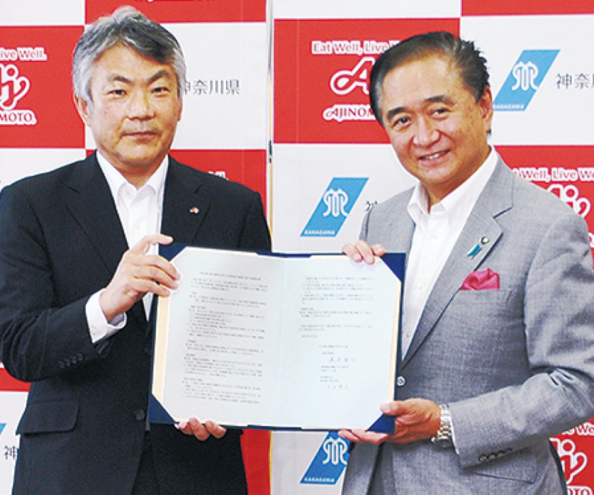 健康と病気の間の状態「未病」改善の推進に取り組む神奈川県は5月31日、味の素(株)東京支社(寺本博之支社長)と、「未病改善の推進等に関する連携協定」を締結した。県民の健康寿命の延伸を図ることを目的に、未病改善の普及啓発などに取り組んでいく。