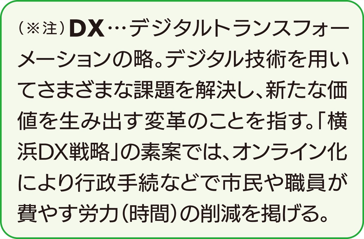 横浜市はDX(※注)の推進に向け、市民の利便性向上や魅力あふれる都市づくりを目的に「横浜DX戦略」の素案をこのほど策定した。行政手続のオンライン化を一層進める方針だが、同時にデジタル機器に不慣れな高齢者等へのサポートも求められそうだ。
