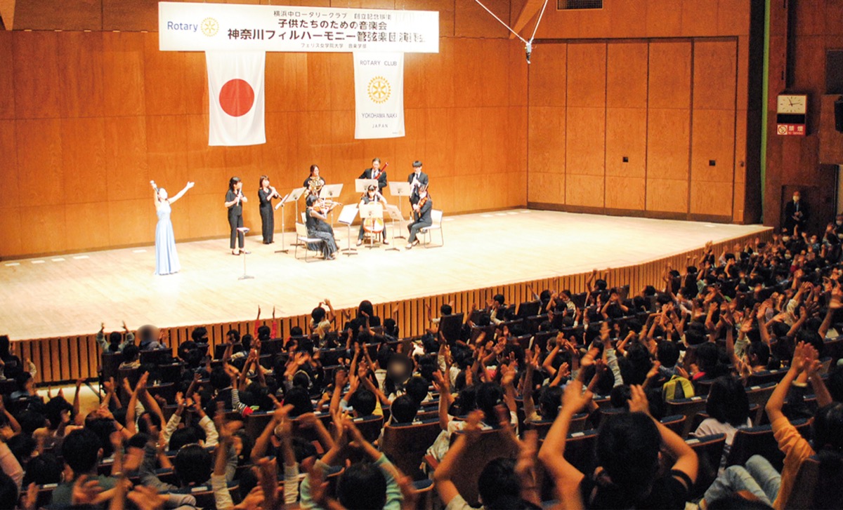 横浜中ロータリークラブ(RC)による「子供たちのための音楽会 神奈川フィルハーモニー管弦楽団演奏会」が6月9日、県立音楽堂で開かれた。中区の12小学校の3、4年生約1000人が参加。子どもたちは、口ずさんだり手拍子で参加するなど、楽しんでいた。