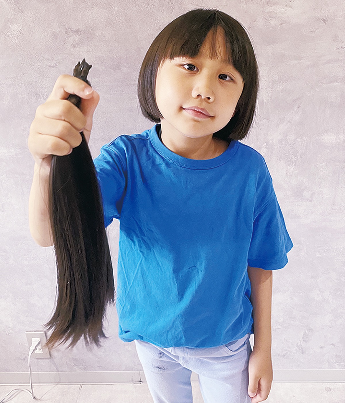 「初めはドキドキしたけど、切ったのは気持ち良かった」と折田君。「僕の髪なら絶対きれいなウィッグができる」と、今後も寄付に必要な31cmの髪の毛を伸ばし、寄付を続けていく予定だ。