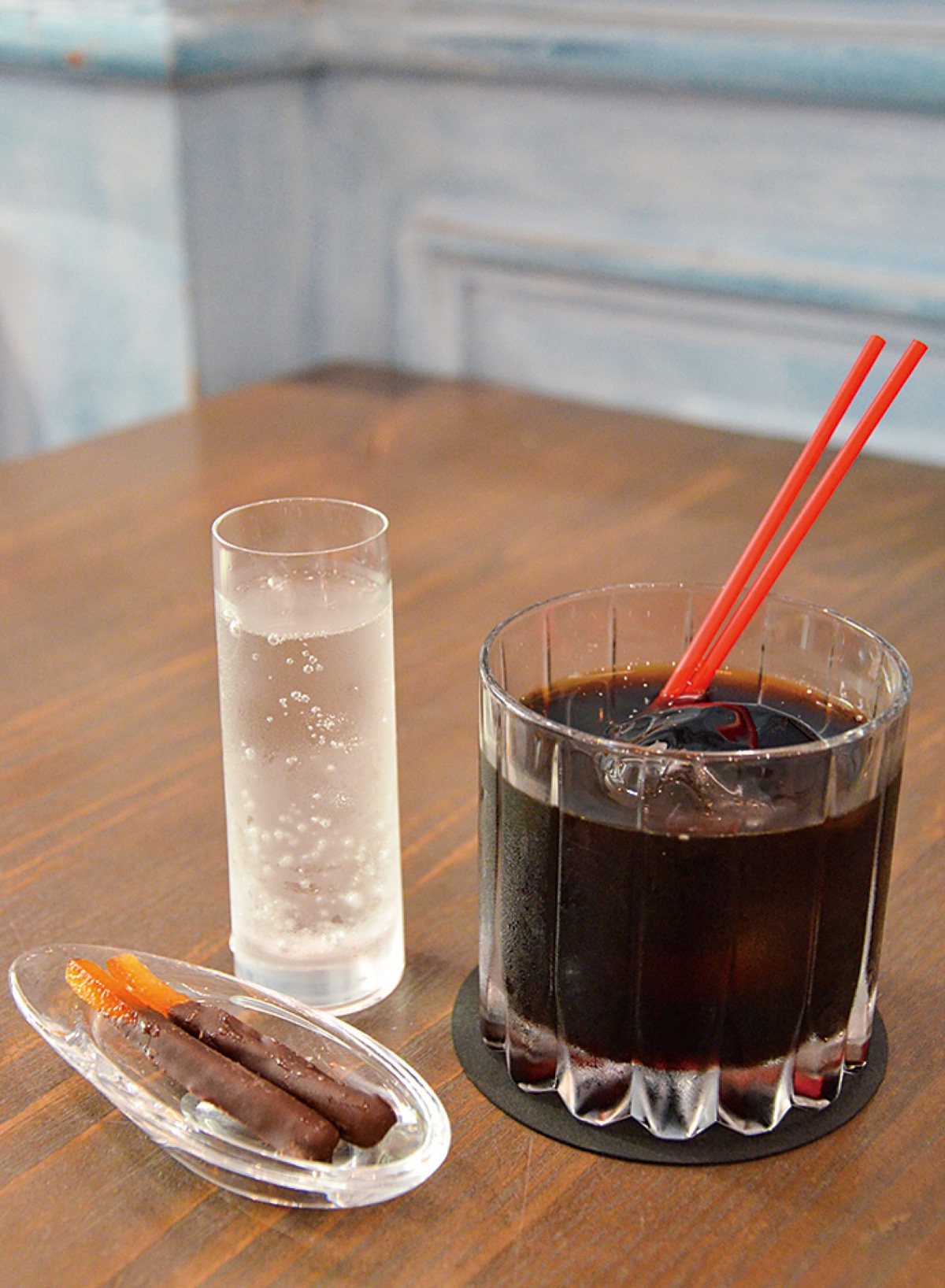 同商品は、このほど復活販売した「50th 元町ブレンド」を使用。店舗の外からも見える水出し専用の器具で、1滴ずつ約12時間かけてじっくり抽出している。水出しコーヒーならではのまろやかな口あたりが特徴だ。セットで付く口直しのソーダと、青葉区の人気洋菓子店「ベルグの4月」オリジナルのオランジェットの果実感が、アイスコーヒーの味の引き立て役に。丸氷がグラスに当たる音も涼を演出している。「ちょっと大人なアイスコーヒーを味わいながら、ゆったり贅沢な時間を過ごしていただけたら」と同店。