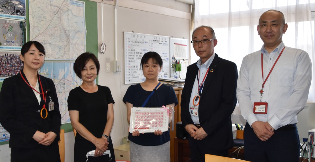 西区内の12郵便局は、社員が集めた約4千点のベルマークを教育活動に役立ててもらおうと区内全9小学校に寄付した。6月28日には、郵便局の局長らが東小学校を訪問し、西区校長会の会長を務める保科桂子校長にベルマークを貼った台紙を手渡した。