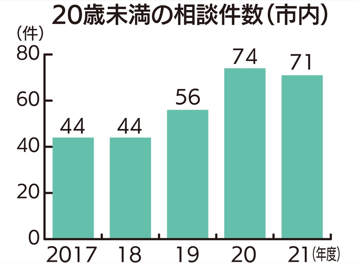市内のインターネットゲームに関する相談は、21年度が122件で、5年間で横ばいとなっている。しかし、20歳未満の相談は71件で、18年度の44件から約1・6倍に増加。相談があった21年度のゲームの契約金額の平均は約32万7千円だった。同センターの担当者は「コロナ禍で自宅で過ごす時間が長くなり、スマートフォンなどを利用する機会が増えたことが要因の一つ」と話す。