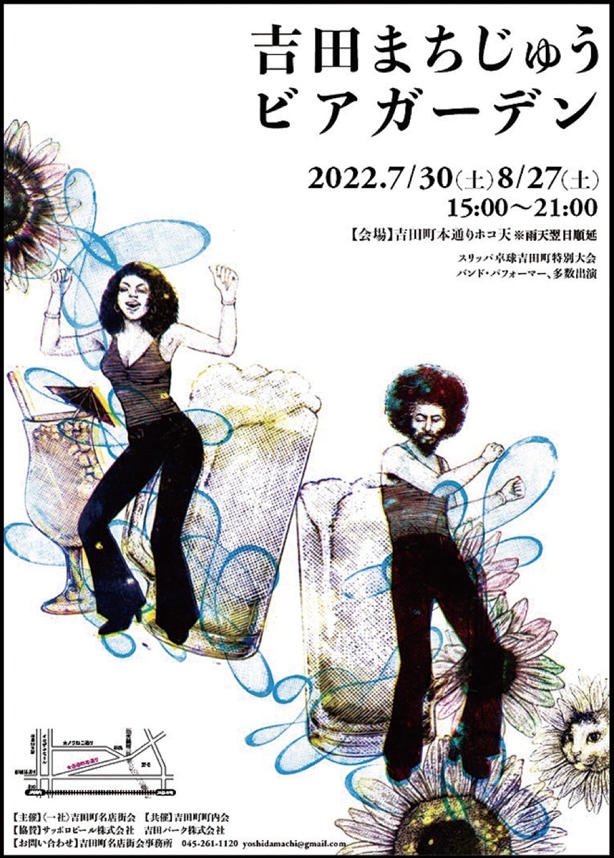 夏恒例の「吉田まちじゅうビアガーデン」が、7月30日(土)と8月27日(土)に行われる。歩行者天国になった吉田町本通りで、午後3時から9時まで。雨天時翌日順延。