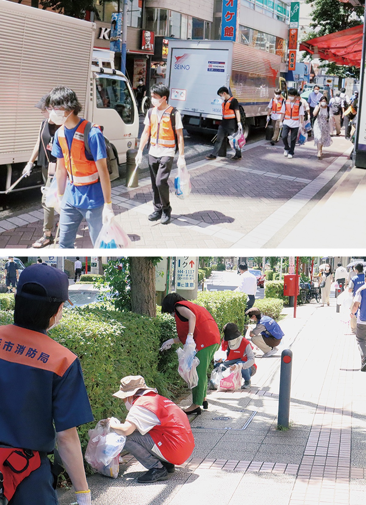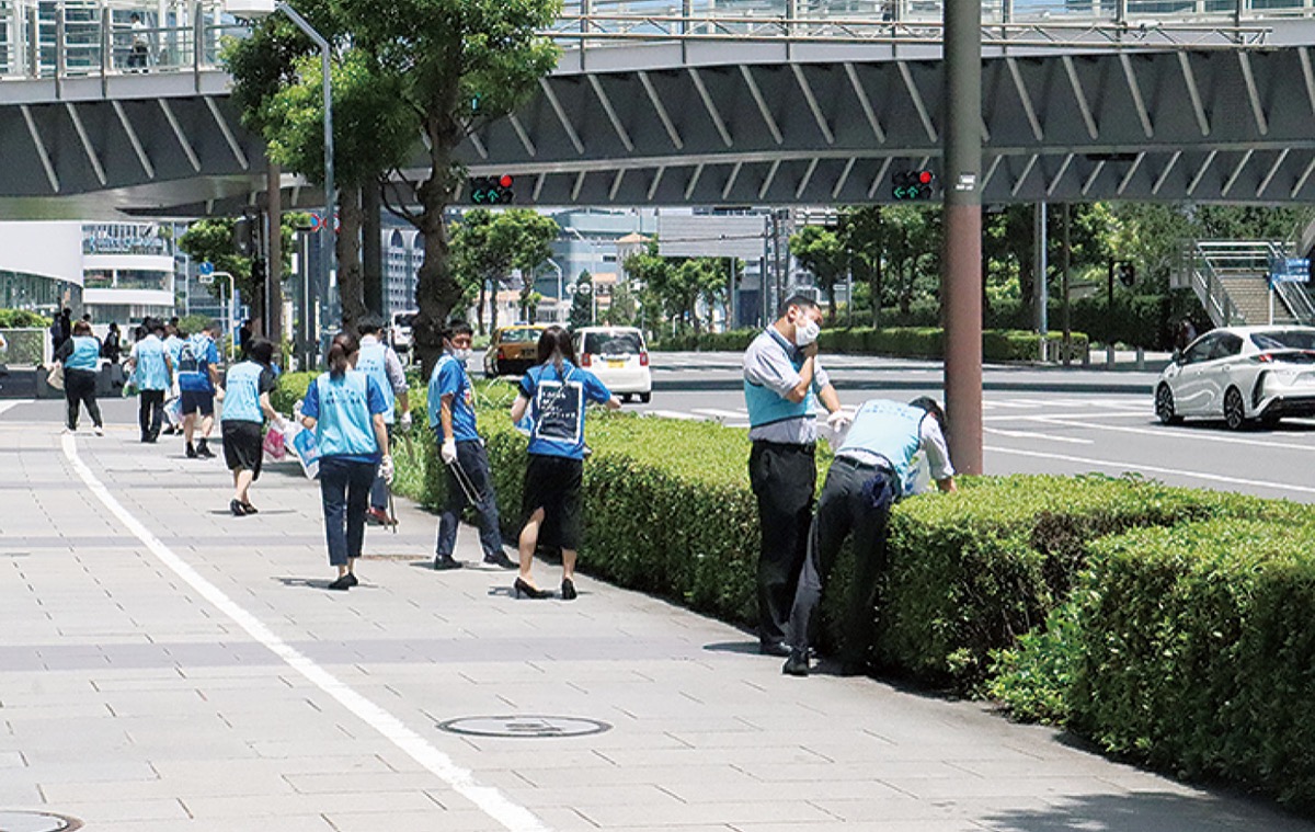 横浜駅の西口、東口、またみなとみらい21地区の新高島駅周辺で、地域の企業や団体などによる一斉清掃が7月25日に実施された。