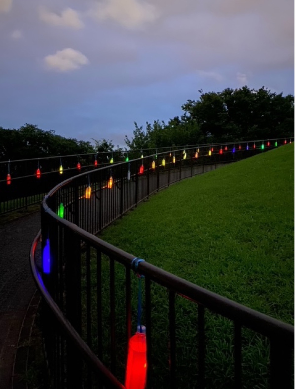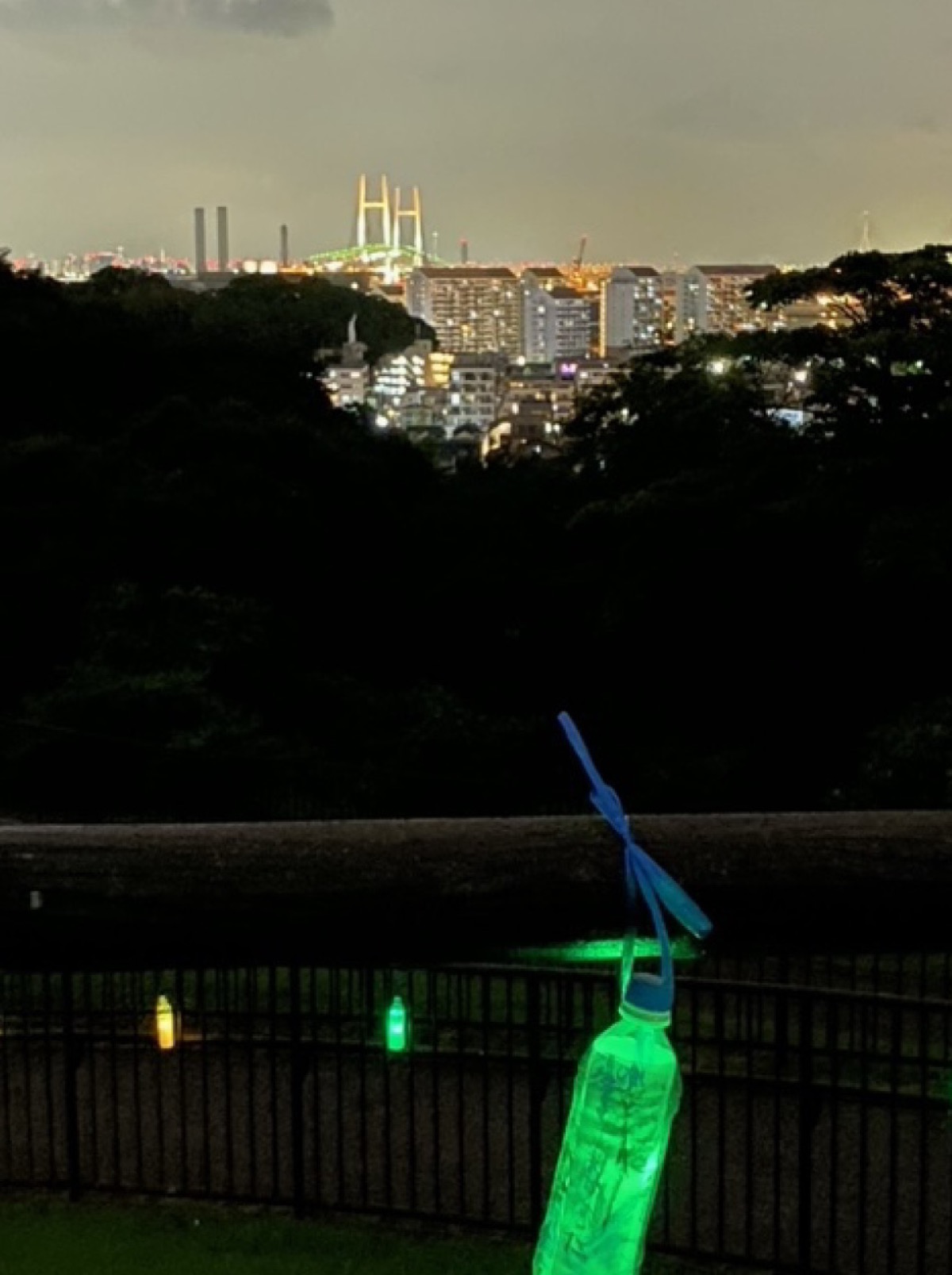 「つながる本牧 つながる未来へ」を合言葉に、LEDライトを入れたペットボトルが本牧山頂公園にずらりと吊るされた。同公園の山頂ビアガーデン(カフェ)もオープン。実行委員のメンバーの一人は「今年はライトアップがパワーアップできました。カフェもなかなか盛況でした」と振り返っていた。