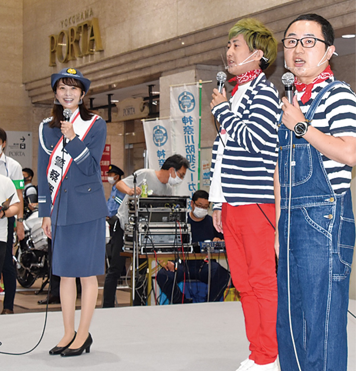 特設ステージには横浜ご当地芸人「横浜ヨコハマ」も登場。笑いを取りながらも犯罪防止の重要性を訴えた。