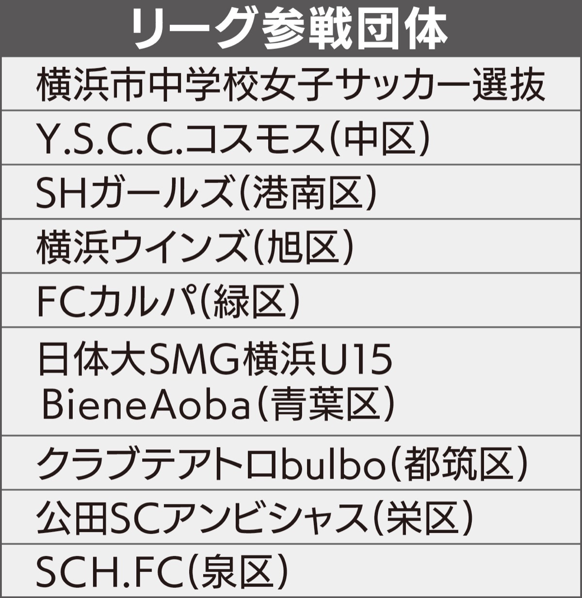 横浜市内で現在、女子中学生のサッカーリーグ「U-15ガールズリーグ」が行われている。女子選手にとって中学進学後にプレーを続ける場が少なく、競技離れが全国的に課題となる中、横浜サッカー協会が試合機会を作ろうと昨年新設。競技人口の底上げに取り組んでいる。
