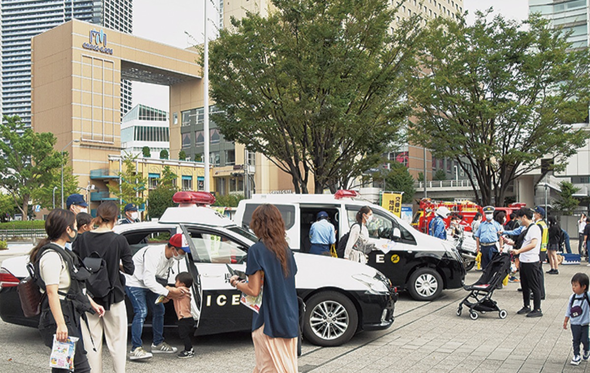 伊勢佐木警察署や中消防署、首都高速道路(株)などが参加。会場にはパトカーや白バイ、消防車両、道路パトロールカーなどが並び、乗車体験を実施。白バイに乗車した3歳の男の子は「格好よかったー」と笑顔で話していた。