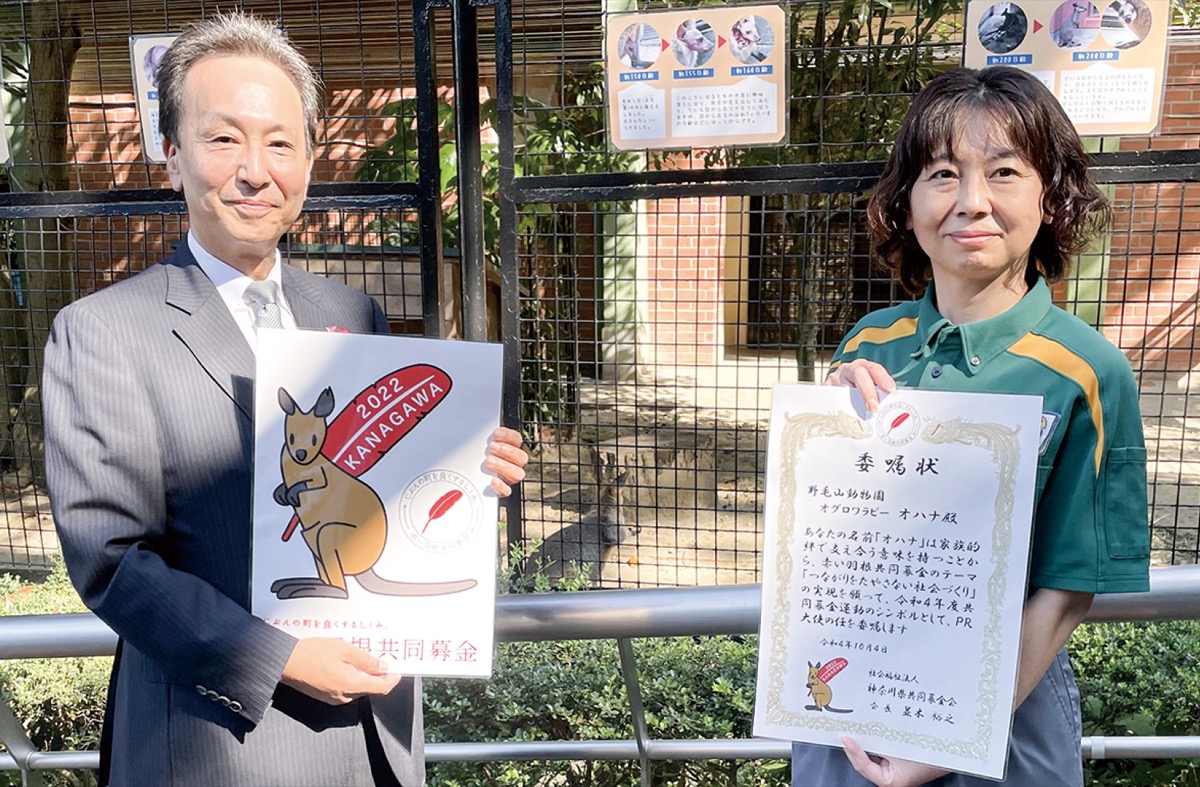 その11代目PR大使に、野毛山動物園のオグロワラビー「オハナ」(メス1歳)が就任、10月4日には同園で県共同募金会の中島孝夫常務理事から田村理恵園長に委嘱状が手渡された。