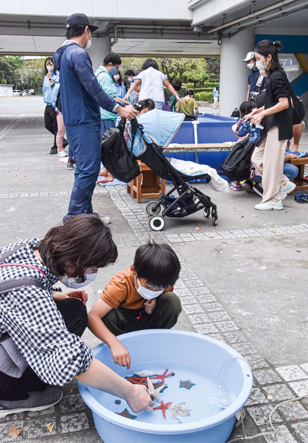午後の部に母親と訪れていた中区本牧大里町の長崎湊大君(5)は、ヒトデやヤドカリにタッチング。「楽しい〜」と笑顔。「触るまでどんな感じか分からない」と話していた。