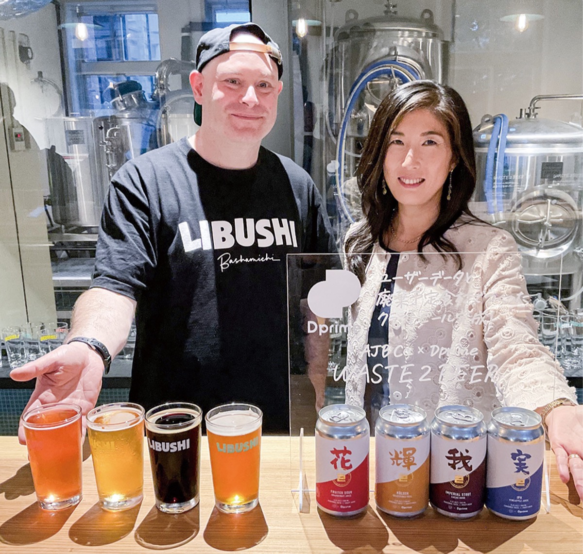 今年4月に開業した醸造所「里武士(りぶし)・馬車道」(運営会社/AJB Co.)=中区北仲通=では、三菱UFJ信託銀行(株)と協働で、社会課題解決に向けた商品開発を行い、このほどサステナブルビールの販売を開始した。カカオの外皮や商品として出荷できない果物など、廃棄予定の食材を活用している。