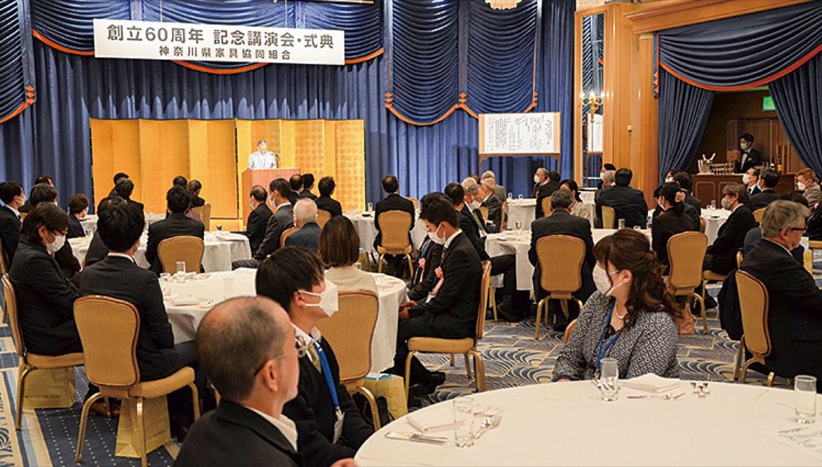 県内40社が加盟する神奈川県家具協同組合=中区伊勢佐木町=が創立60周年を迎え、10月21日にホテルニューグランドで記念式典を行った。