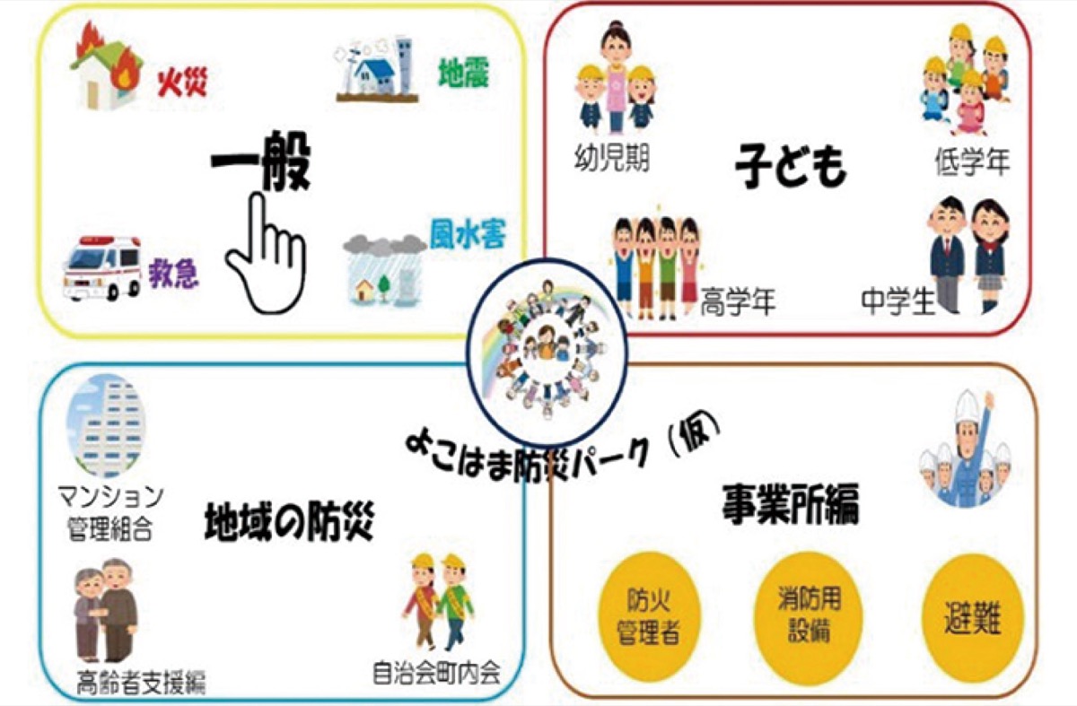 市が創設する「(仮称)よこはま防災パーク」は「いつでも、どこでも、誰でも、災害へ備えるうえで必要となる知識や技術を気軽に学び、市民一人ひとりの防災力が向上して、いざという時の適切な行動につなげることで自助の裾野を広げる」ことが目的。