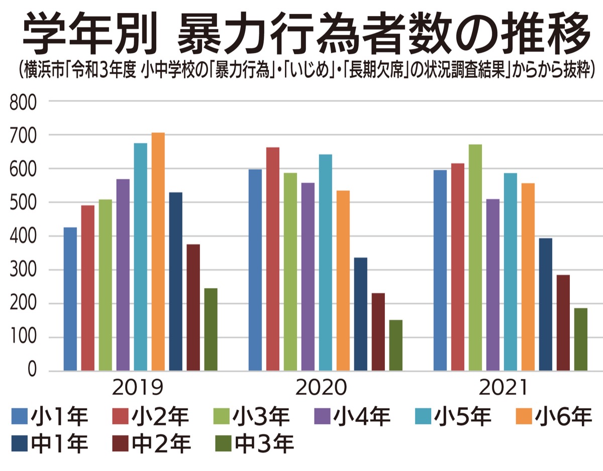 横浜市がこのほど、市内小中学校の2021年度の暴力行為やいじめ、長期欠席の状況調査結果を発表した。それぞれで20年度より増加したが、市教委は小学校低学年の暴力行為の増加傾向を危惧。コロナ禍が児童の心の成長に影響していると分析し支援を進める。