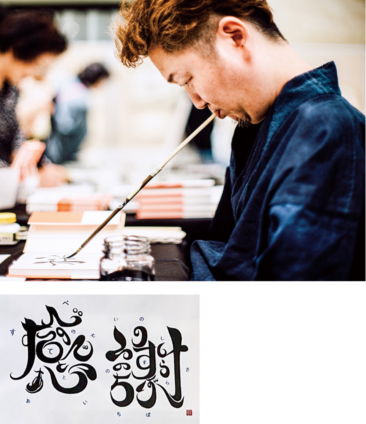 作者の浦上秀樹さん(49)は21歳の時に筋肉が徐々に減少する難病「遠位型ミオパチー」を発症。口に筆をくわえて文字を描く手法で、漢字の中にひらがなのメッセージを込めたアート作品「こころMoji」を生み出している。