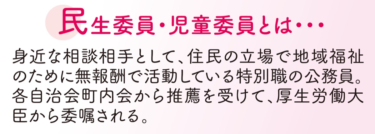 介護や子育てなど、地域住民の生活の困り事や悩み事、心配事の相談に乗り、解決に向けて背中を押してくれる「民生委員・児童委員」。地域住民の”身近な相談相手”として、必要があれば、行政や地域ケアプラザ、専門機関などにつなぐ「橋渡し役」としての役割を担っている。今年は3年に1度の一斉改選の年。12月から新たに民生委員となった平田康子さん(65)と同じマンションに住む河村泰昌さん(74)に話を聞いた。