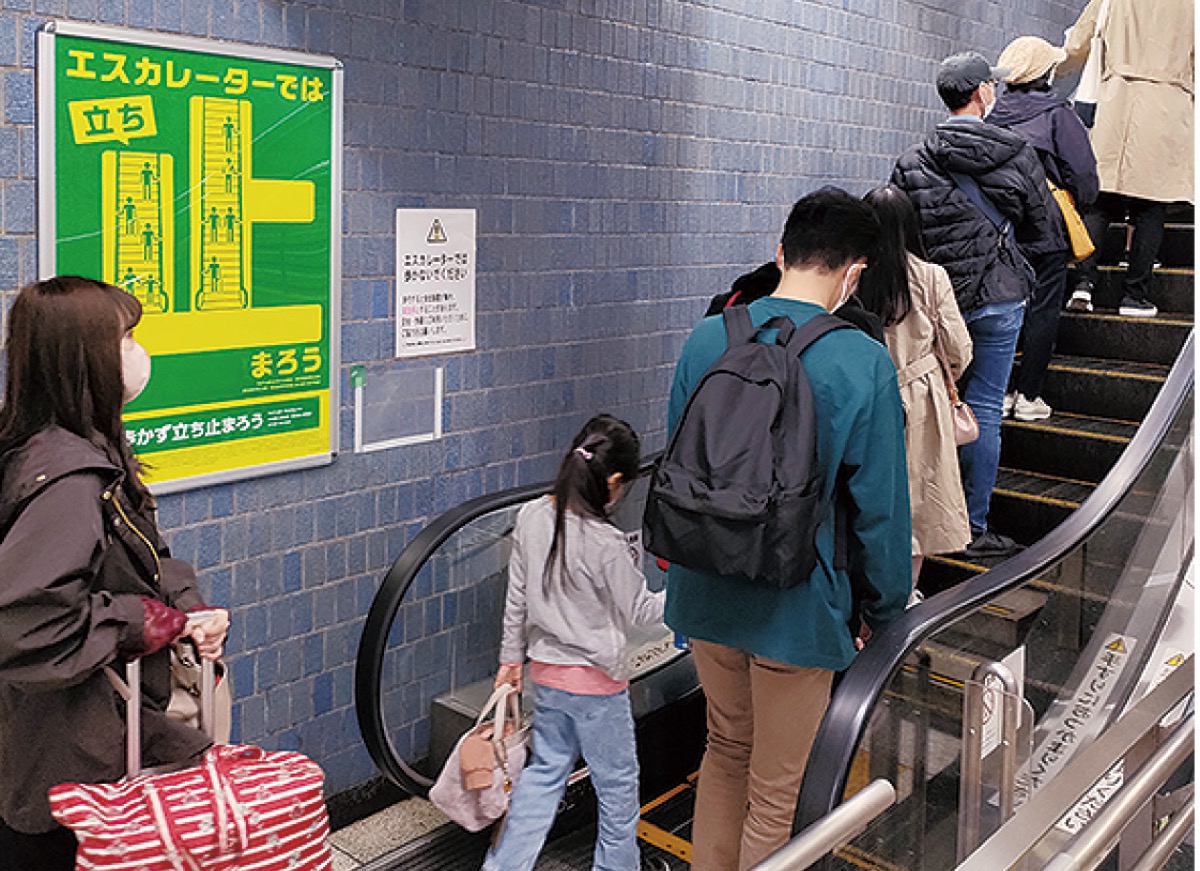駅や商業施設のエスカレーターでは、左側に乗る人が立ち止まり、空いた右側を歩く人の姿が見られる。この「片側空け」は慣習だが、歩く人と立ち止まっている人が接触する危険性がある。