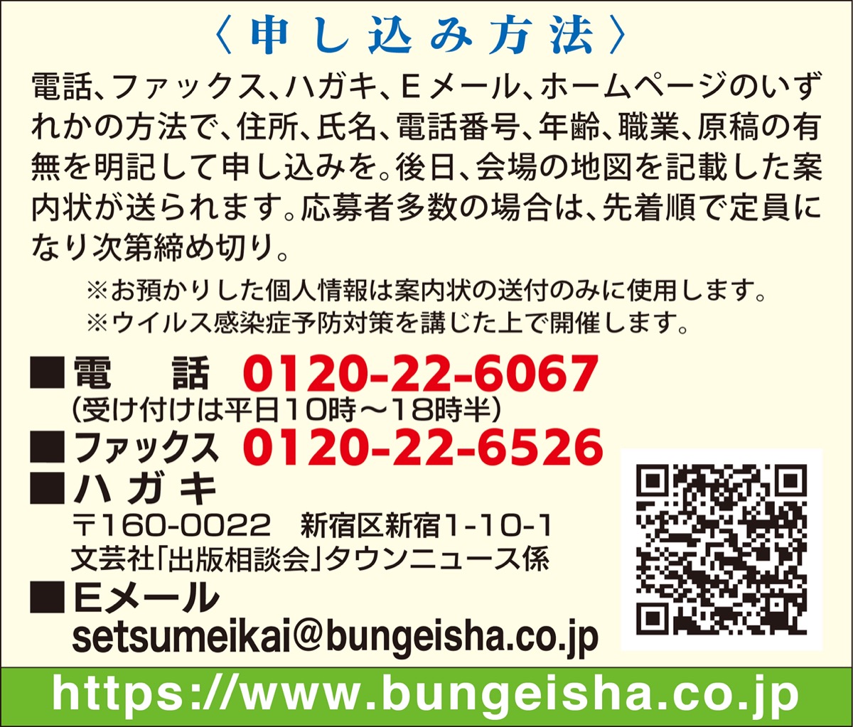 (問)【フリーコール】0120・22・6067(文芸社文化事業推進課)