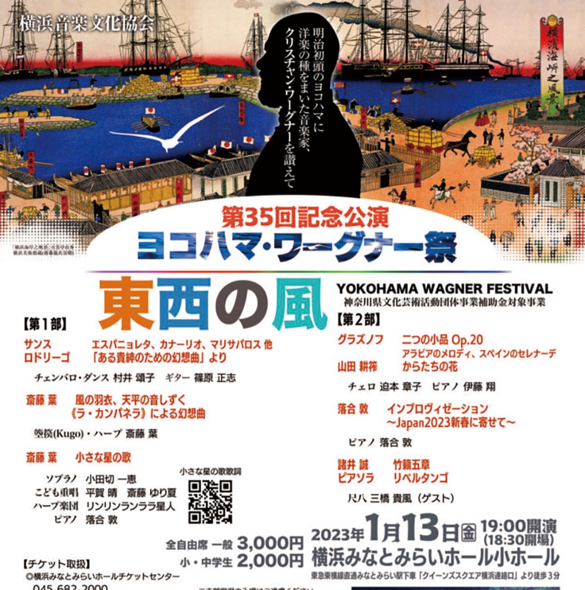 明治初期の横浜に洋楽の種をまいた音楽家、クリスチャン・ワーグナーの功績を称えようと毎年開催しており、35回目。35周年の記念講演となる今年は、幅広い和洋楽器での演奏のほか、県内、市内に住む小学生が『小さな星の歌』を歌唱する特別企画も。