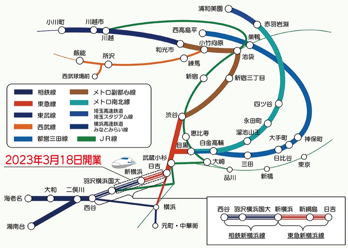 「相鉄・東急直通線」(相鉄新横浜線・東急新横浜線)の開業日が3月18日に決まった。同路線を運行する相模鉄道(株)と東急電鉄(株)は昨年11月から、相互乗り入れを行う車両を使用した習熟運転を始めており、相鉄線内で東急の車両が走るなど、開業準備が進められている。