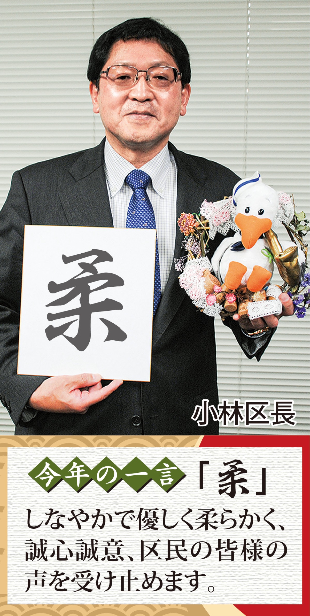 「区民の皆様と誠心誠意向き合ってお話し、今までのやり方にとらわれず柔軟に対応していきます。2027年の区制100周年の準備も進めながら、私も率先して地域に出て地域の方々と顔を合わせてお話をし、絆を紡いでいきたいです」