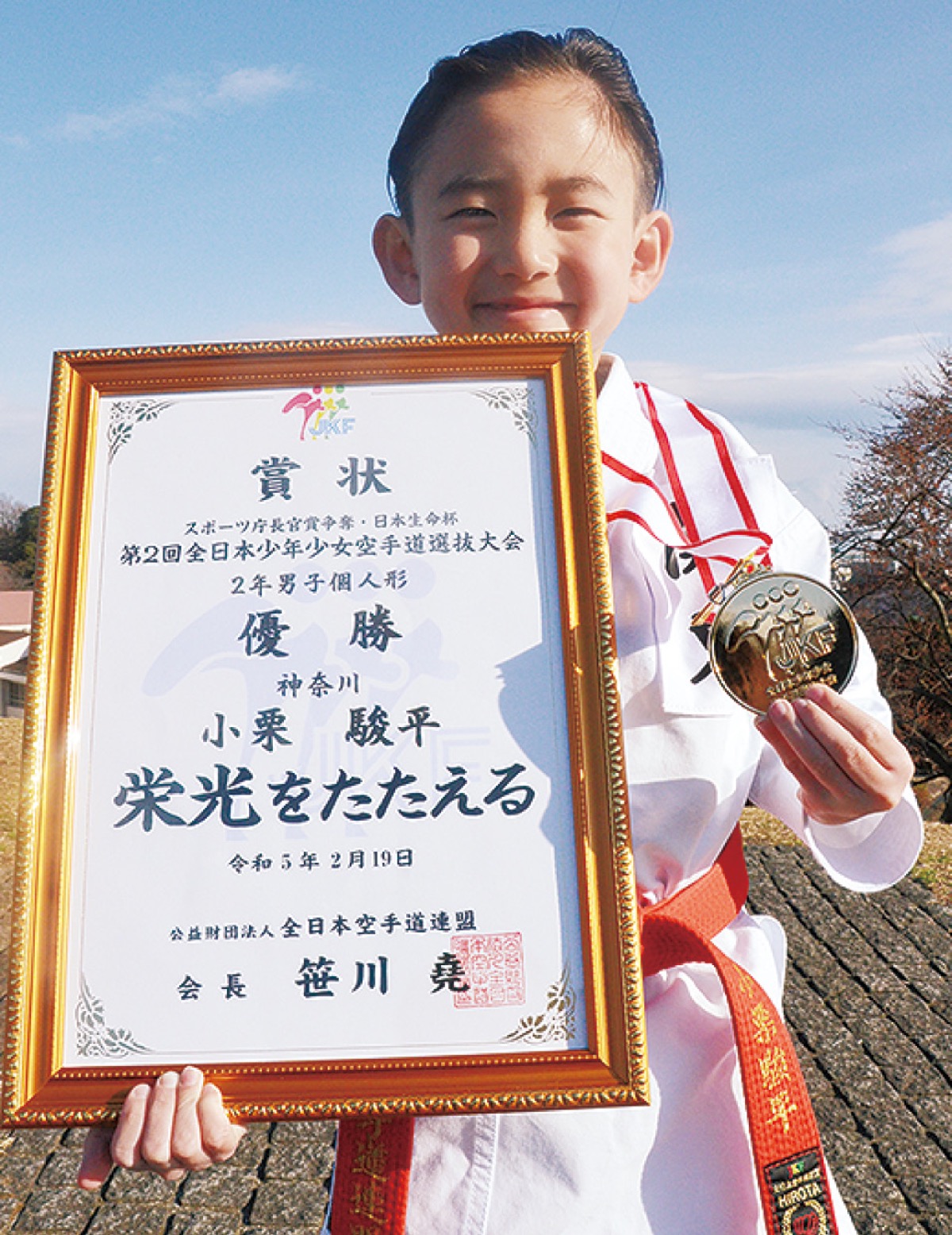 中区本牧原在住の小栗駿平君(8)が、2月17日から19日かけて北海道帯広市で行われた「第2回全日本少年少女空手道選抜大会」の2年男子個人形の部で、優勝を果たした。
