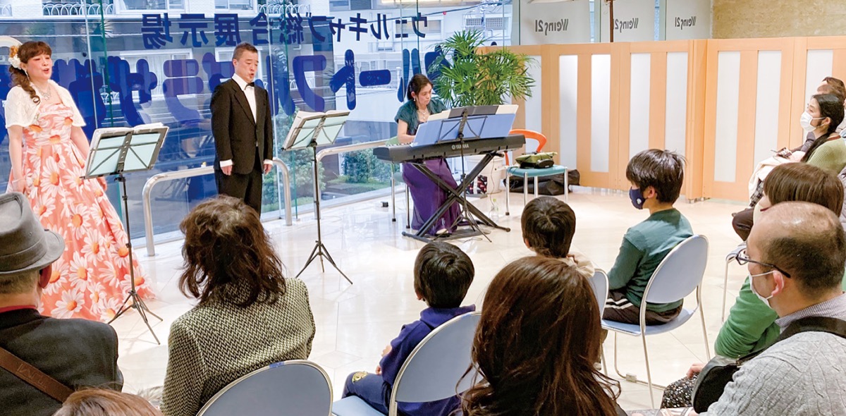 ウエインズトヨタ神奈川(株)の本社ビル2階にある福祉車両常設展示場・トヨタハートフルプラザ横浜で2月19日、地元の音楽家によるクラシック演奏会が開催された。