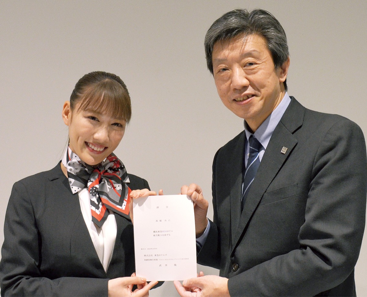 ファンならではの目線で高城さんへの愛を詰めこんだ企画書を所属事務所に提出すると、トントン拍子に話が進んだ。「コラボが決まってから3月と6月に高城さんが横浜でソロライブを予定していることを知りました。2月には横浜魅力発信アンバサダーへの就任などもあり、偶然が重なって鳥肌が立ちました」と武井さん。企画開始前には念願の高城さんとの対面も実現し、RENIホテル総支配人就任の「辞令」を手渡した。