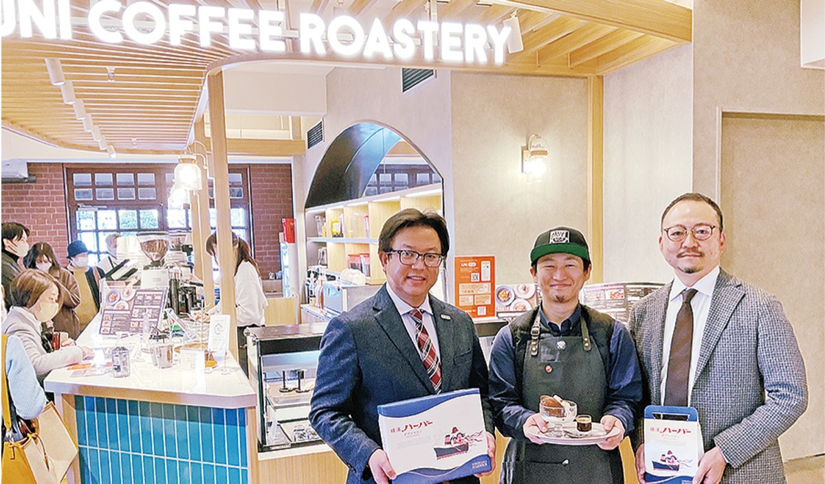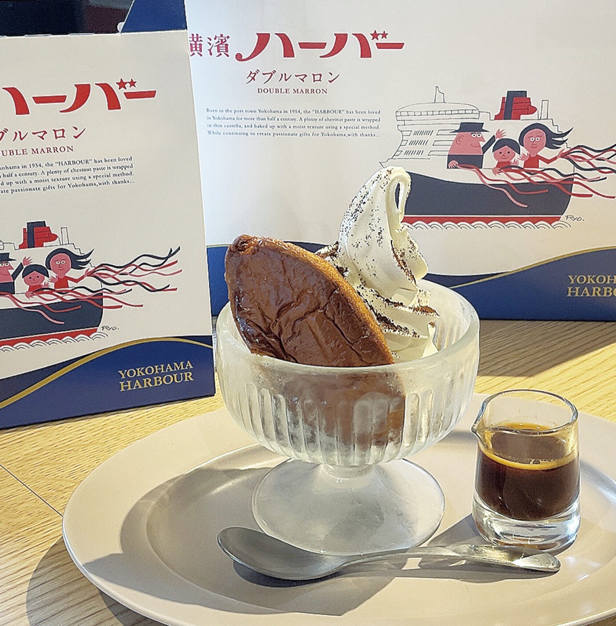 「ハーバーアフォガート」は、軽くフルーティーな味わいが特徴の同店のコーヒーにハーバーを浸してオーブンで焼き、コーヒー豆のパウダーをトッピングしたバニラアイスクリームを添えて提供。「最初はそのまま食べて、後から別添えのエスプレッソをかけて味変を楽しんで」と同カフェを運営する(株)GRACE商品開発の桑野翔平さん。横浜が日本発祥であるアイスと合わせたり、焼き立てハーバーのような食感を出すためエスプレッソで水分量を調整するなど試行錯誤の上完成したという。ありあけの堀越隆宏社長は「昔からハーバーは牛乳に合うと言われていたが、アイスとこんなにも合うとは」と驚いていた。