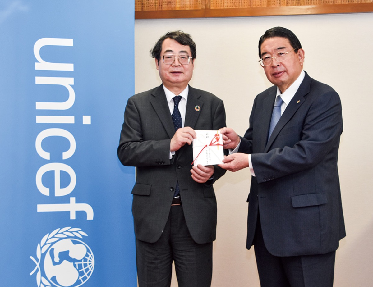 横浜中税務署管内の税務関係民間6団体が、未使用はがきや切手など40万円相当を集め、神奈川県ユニセフ協会に寄付した。3月2日には税務署で贈呈式が行われ、6団体を代表し横浜中間税会の六川勝仁会長が、同協会の當具伸一専務理事に目録を手渡した。