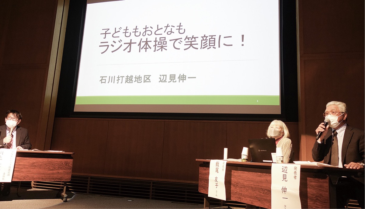 辺見さんは石川打越地区で子どもから高齢者まで参加できる夏休みのラジオ体操を開催。コロナ前は約80人いた参加者が約60人に減少し、集客方法などが課題になっている点を説明していた。