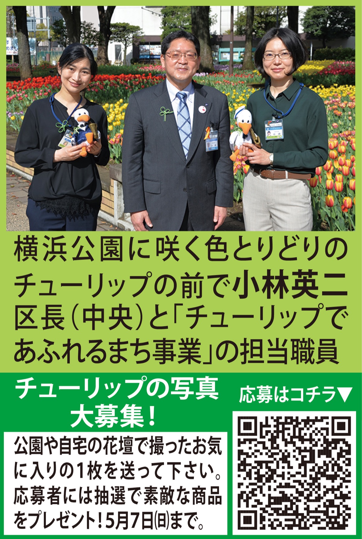 チューリップの花言葉は「思いやり」。区民の気持ちに寄り添って声を聞く。まさに区政で大切にしている考えそのものです。今後もチューリップと思いやりがあふれる街を目指していきます。