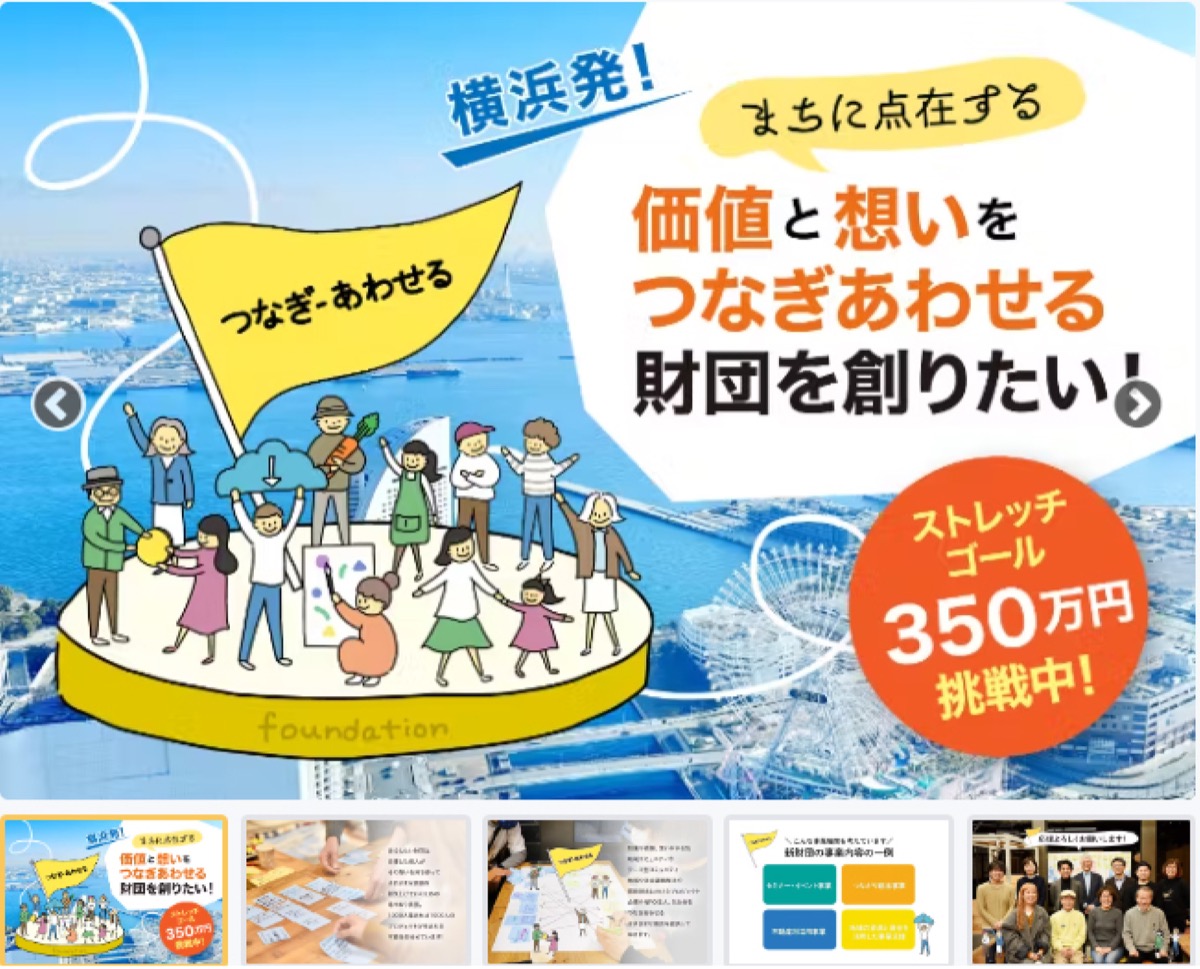 まちに点在する価値や想いをつなぎあわせ、地域を盛り上げることを目的とした財団設立のためのクラウドファンディングがウェブサイト上で行われている。ソーシャルビジネスを中心とした起業家等の育成・支援などを行う関内イノベーションイニシアティブ株式会社(以下、Kii)=横浜市中区北仲通=の代表取締役、治田友香さんが企画した。