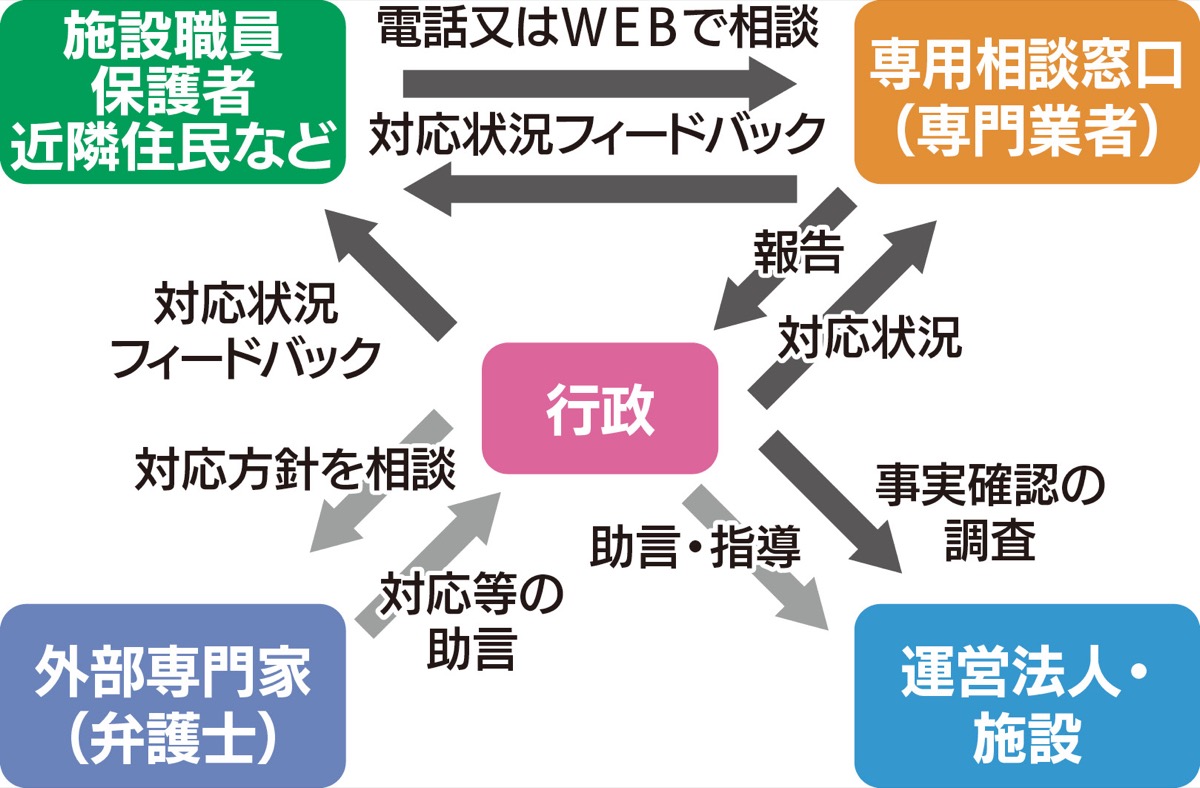 その後、市が運営法人等に事実確認の調査を行い、保護者などに結果を報告。弁護士を中心とした外部専門家も導入し、対応方針を相談する。