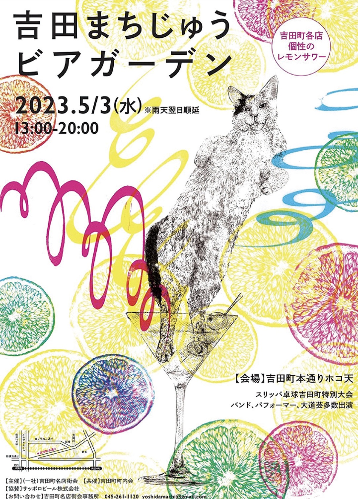 JR関内駅北口側の吉田町通りで5月3日(祝・水)、「吉田町まちじゅうビアガーデン」が開催される。午後1時から8時まで。