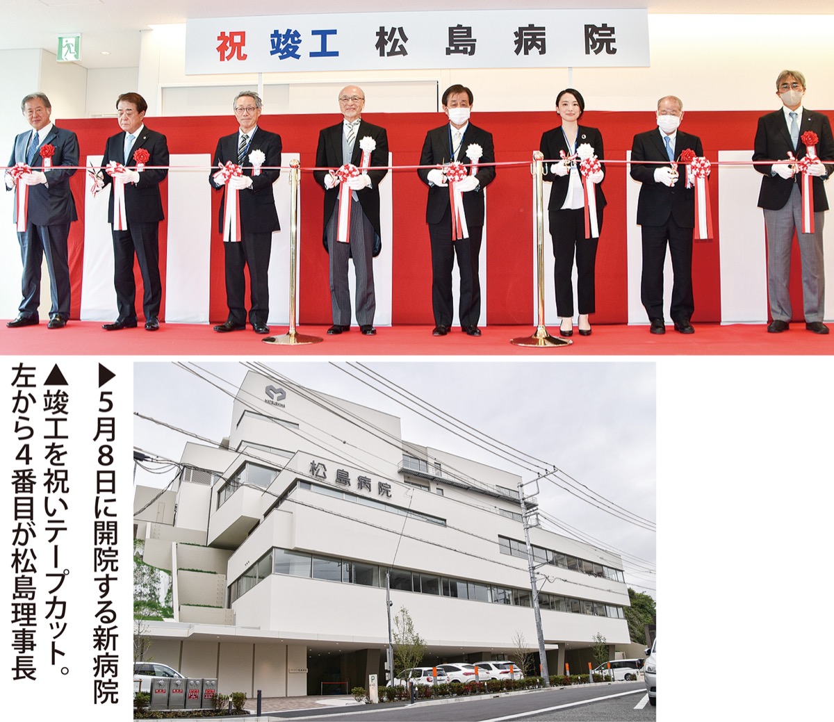 新・松島病院=西区戸部本町9の11=の竣工(しゅんこう)式が4月22日に行われた。医師会などの医療関係者をはじめ建設会社や地域住民ら約70人が出席し、内覧会も開催された。同じ町内にある現在の松島病院と西区伊勢町の松島クリニックが統合され、5月8日に開院する。
