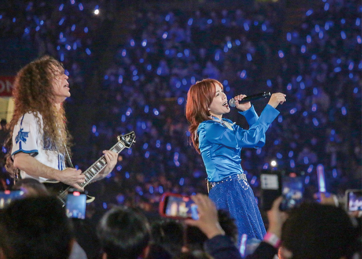 ライブではヒット曲の「夢見る少女じゃいられない」「恋心」「Sweet Emotion」の3曲を熱唱。ギタリストのマーティ・フリードマンさんとともにファンを楽しませた。