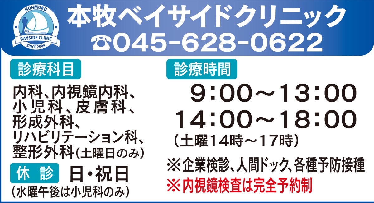 日焼けや汗などによる肌トラブルが増加するこれからの季節。中区本牧原の「本牧ベイサイドクリニック」(根岸龍二郎院長)は、2021年から皮膚科・形成外科を設け、担当医が内科と2診体制で診察にあたる。