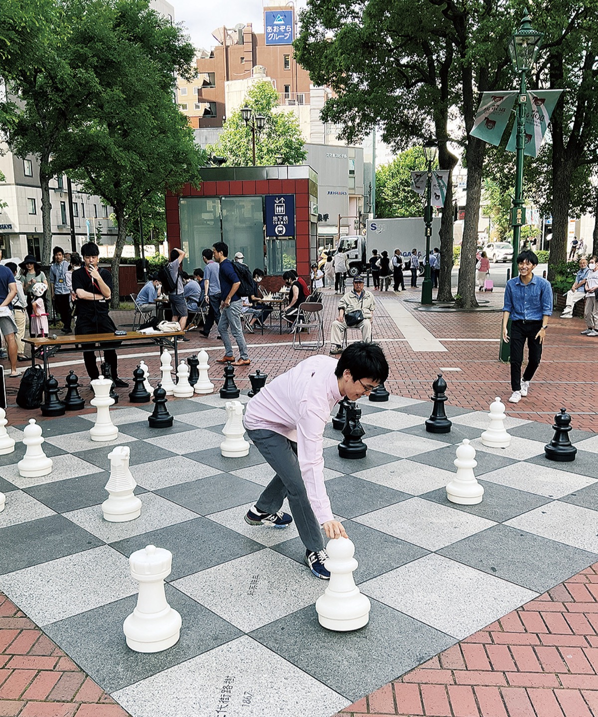 巨大チェスで初めて対戦したという山元聡一朗さん(東京大3年)は「全体を把握しにくい大盤ならではの難しさがあった」、長瀧航太さん(東京工業大2年)=神奈川区在住=は、スピード感も重視される駒移動にかなり体力を消耗したと話し「もはや全く別のゲーム。疲れたけれど、面白かった」と笑顔を見せた。
