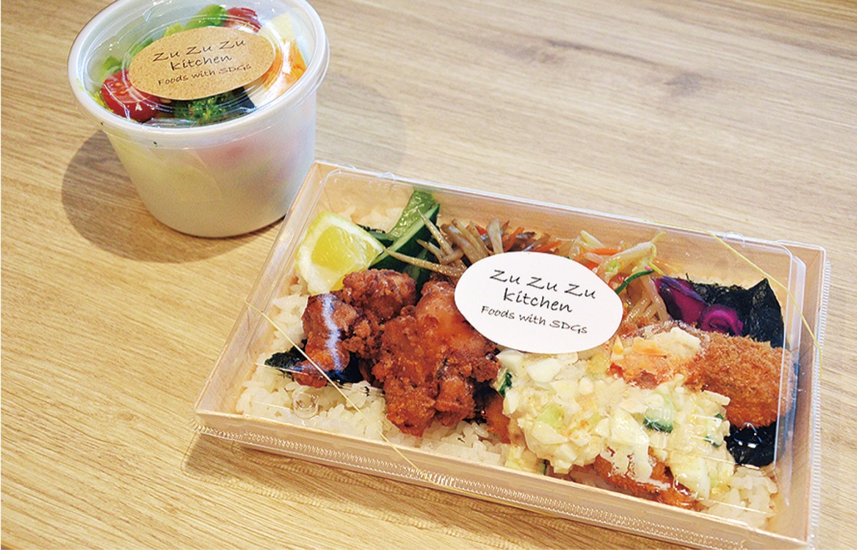 講師と学生が協力して地元の約50店舗に足を運び参画を呼び掛け、現在は8店舗が同システムを利用している。参画店舗の1つである「呑場 ずずず」=中区常盤町=を運営するTENGOOD(株)の稲葉喬之代表取締役は「企画が面白いと思った」と話す。無添加や有機野菜を使用した料理を普段から提供していて「学生に美味しいものを食べて欲しかった」と参加を決めた。元々は夜だけの営業だったが、同大学との連携を機に学生に提供している弁当販売を店舗でも始めたという。「始まったばかりで学食の利用者がまだ少ない。もう少し販売数が増えれば」と期待する。