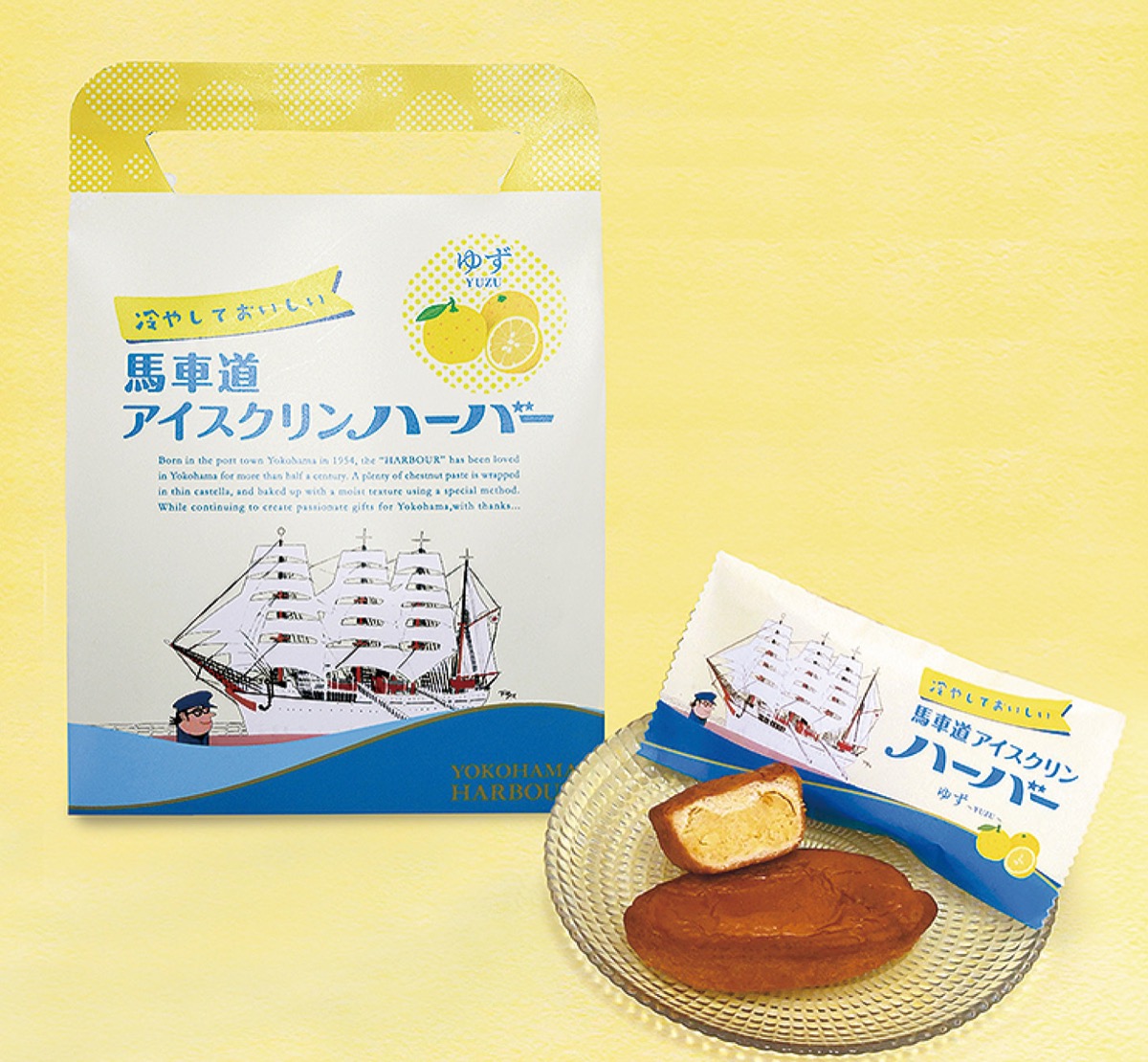 日本のアイスクリーム発祥の地である横浜・馬車道ゆかりの「アイスクリン」。伊勢原市・柏木牧場の生乳を使用したアイスクリン餡に、国産のゆずを組合せた夏にぴったりな爽やかな味わいで「冷やしても凍らせてもおいしく食べられる」と同社。ゆずを使ったハーバーは初めてだという。