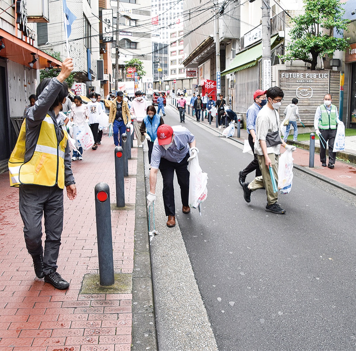 西口、東口、それぞれ3つのグループに分かれ、参加者はごみ袋とトングを手に、たばこの吸い殻や缶、瓶、ペットボトルなどを拾っていた。清掃活動のほか、受動喫煙防止の啓発活動や放置自転車確認のパトロールなども行われた。