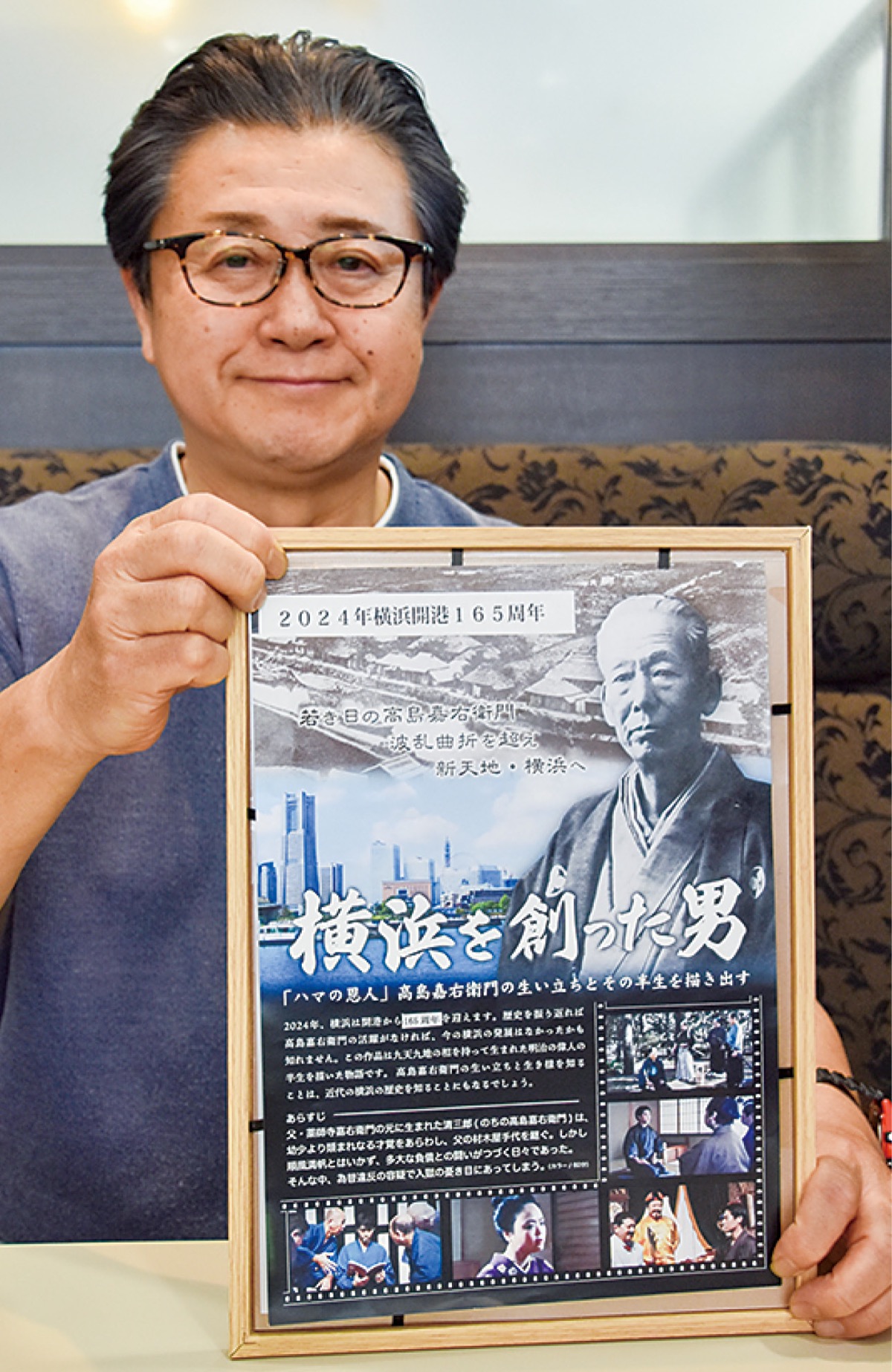 この映画を企画したのは二宮恭さん(68)=海老名市在住。開港150周年の際に、嘉右衛門がつくった「高島学校」を題材にした舞台に出演。そこで知り合った仲間の縁で嘉右衛門を題材にした小説に出会い、松竹の元映画プロデューサー、齋藤さんに相談したところ、自主映画化することに。昨年12月と1月の2日で撮り終えた。二宮さんは「横浜の発展に貢献した高島嘉右衛門のことを少しでも知ってもらえたら」と話す。