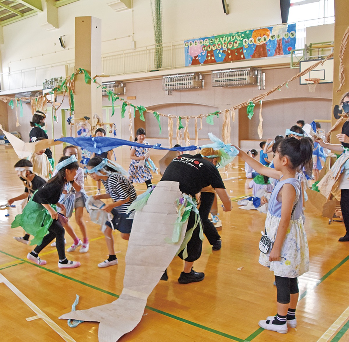 地球から紙の惑星へ行くというコンセプトで、体育館にはダンボールアーティストが海中をイメージして制作した高さ約3mの構造物が用意された。その中で児童はカラーペーパーや紙テープなどを用い、参加したアーティスト6人とともに世界観を作り上げた。会場内ではリトル・マーメイドの挿入歌など馴染みのある音楽がピアノとフルートで生演奏され、子どもたちは紙を体に巻き付けたりかぶったりして人魚や亀の女王などになりきったり、クラゲやイカを作ったりと、思い思いの発想で制作を楽しんだ。参加した児童からは「紙の惑星って最高」という声が上がり、個々の感性で海の世界を楽しんでいた。