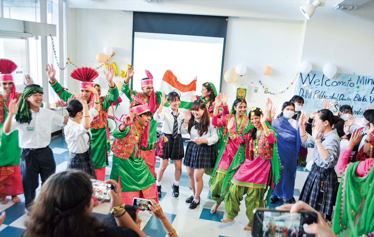 当日、インド人留学生らはサリーなどの民族衣装を着て参加。インドから持ってきた地元の菓子やアクセサリーの配布、学校紹介、歌やダンスを披露するなどして会場を湧かせていた。同校の生徒たちは折り紙などの日本の遊びを英語で紹介し、両生徒たちが一緒に楽しめるプログラムを実施した。