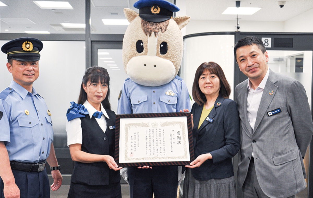 山手警察署は6月26日、特殊詐欺を未然に防止したとして横浜銀行本牧・新本牧支店に感謝状を贈呈した。※新本牧支店は2016年に本牧支店内に移転。