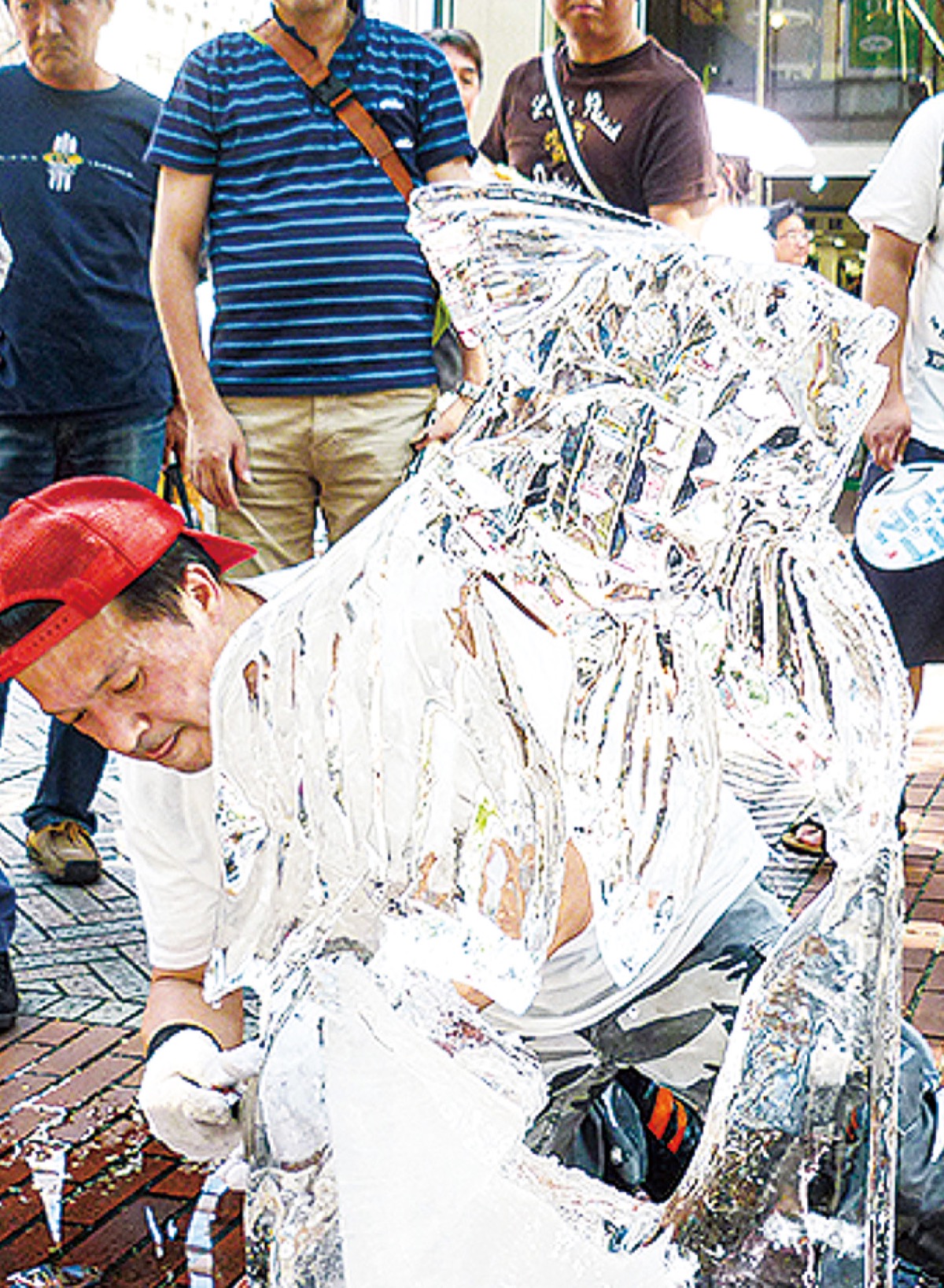 ホテルや飲食店のシェフら約20人が巨大氷柱を約1時間で美しい彫刻に仕上げる。2丁目付近で11時〜先着1千人にかき氷の無料配布も。